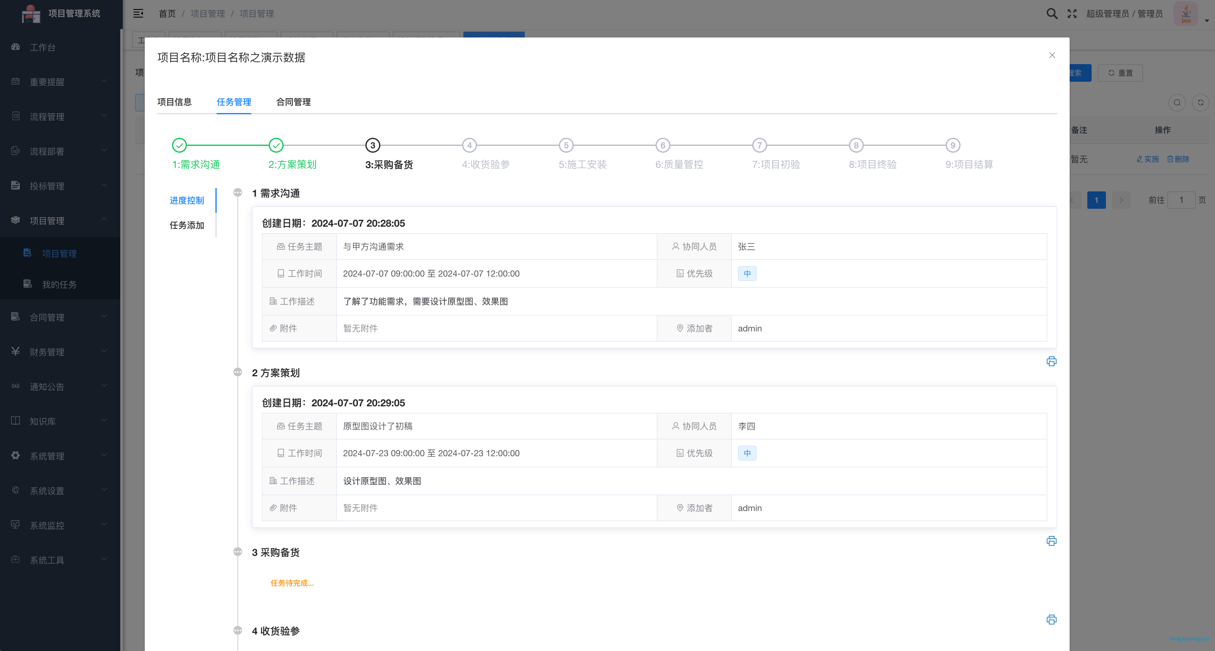 業(yè)務(wù)功能包括:流程審批、項目管理、任務(wù)進度管理、合同管理、事件提醒、財務(wù)管理、投標(biāo)管理等;